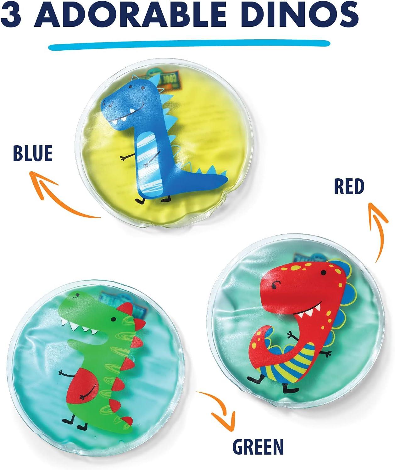 Cool Coolers Boo Boo Flexible Gel Ice Pack, 4×4”, Reusable Cold Compress for Minor Injuries, 3 Pack, Dino