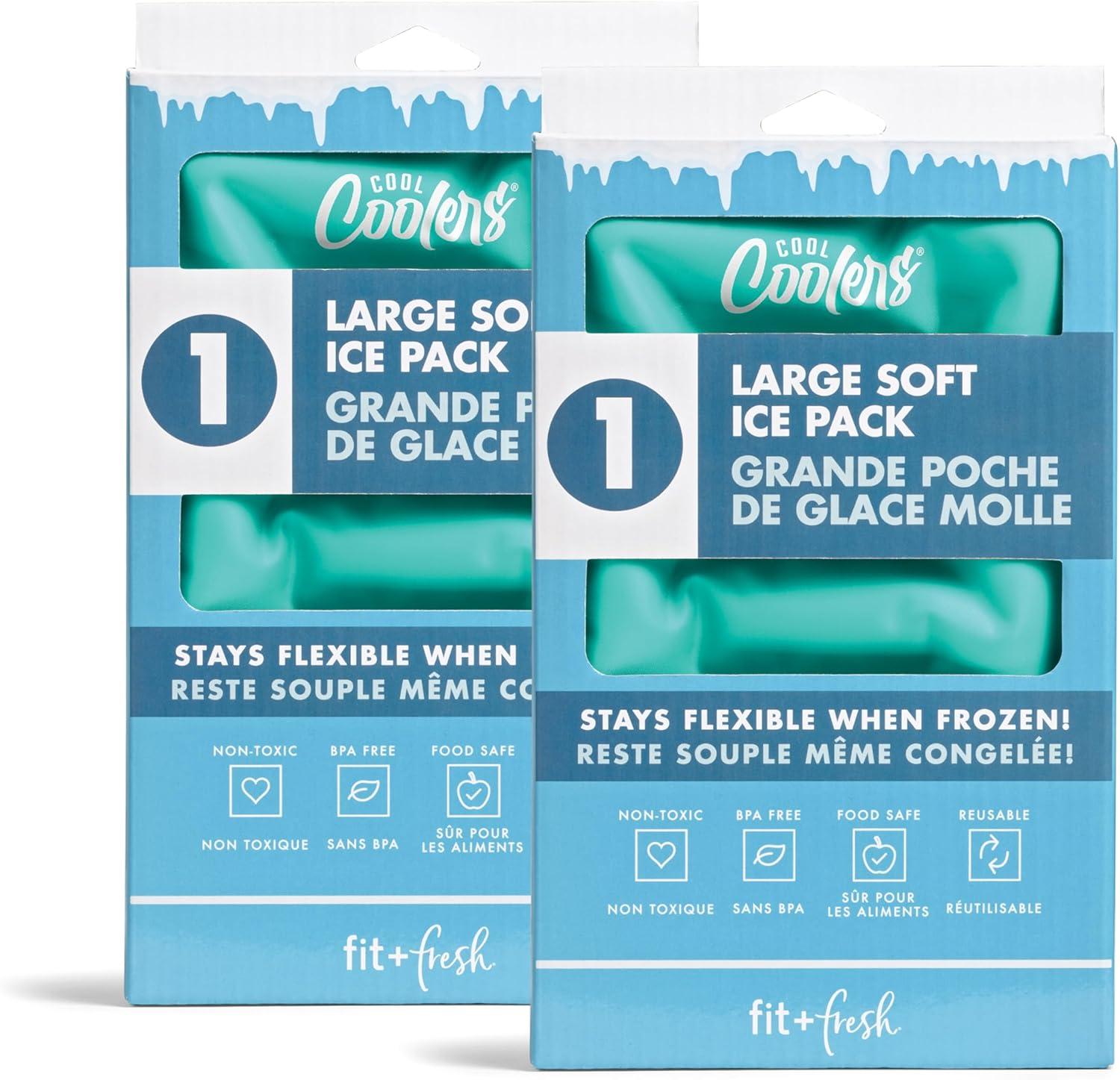 Cool Coolers XL Soft Ice Packs by Fit & Fresh, your ultimate cooling solution for any adventure! Each color comes with 2 XL Soft Ice packs measuring 8.5″x 5.25”x 0.5” each and crafted from durable nylon and eco-friendly gel, ensuring flexibility when frozen. These reusable ice packs keep food and beverages cold for hours in lunch boxes, coolers, beach bags, and more. Non-toxic and BPA-free, they're safe for all uses. Trusted for their quality, Cool Coolers are your go-to for maintaining freshness wherever you go, from picnics to daily lunches and beyond. Whether you're seeking reliable ice, insulated lunch bag, a spacious lunch box, a cute tote for work, or travel bag we have you covered. Crafted with convenience and style in mind, our products elevate your lunch or cooler game with our chic designs, perfect for office lunches or outings. Shop Fit & Fresh and experience the perfect blend of fashion and functionality.
