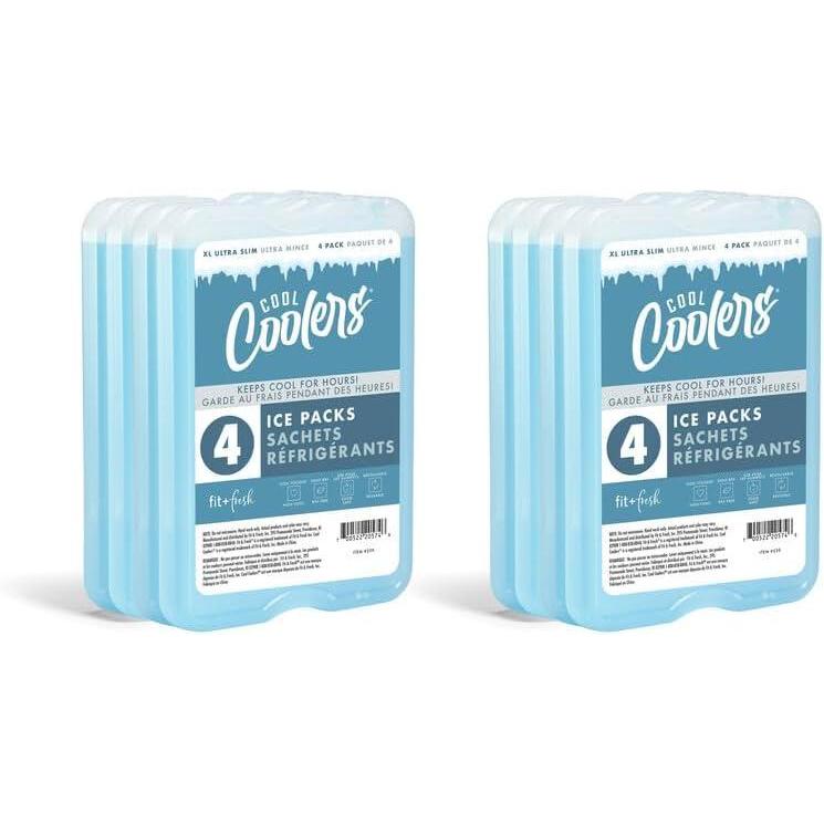 Cool Coolers by Fit + Fresh, Reusable & Long-Lasting XL Slim Ice Packs, Cold Packs for Lunch Boxes, Ice Packs for Lunch Bags. Cooler Accessories for Camping, Beach, Lunch, and Work, 8PK, Clear Blue(Clear Blue 4 PK)