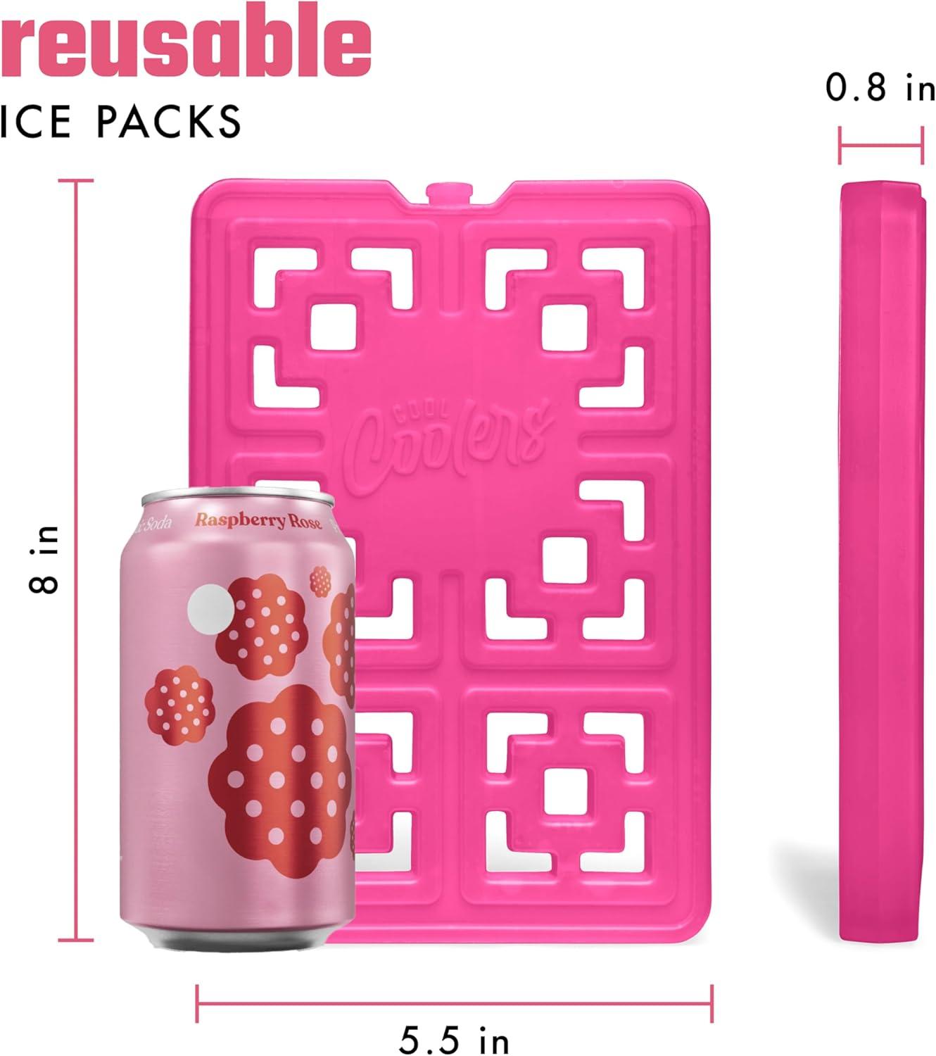 Cool Coolers XL Fashion Ice by Fit + Fresh, 4pk Ice Packs for Coolers, Freezer Packs for Lunchboxes, Pearl White(Hot Pink X-Large 2PK)