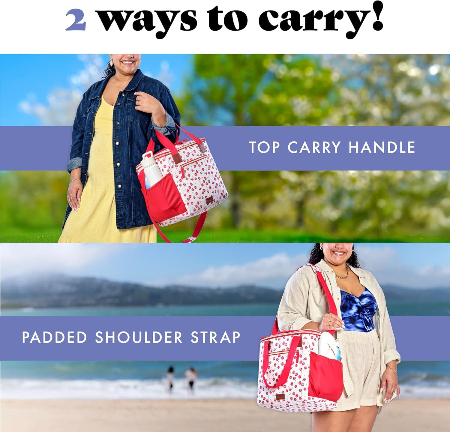 Fit & Fresh, 24-Can Soft Cooler Bag Insulated Leak-Resistant, Portable Soft Cooler, Large Cooler, Soft Sided Cooler Bag, Travel Cooler, Al Fresco(Cherry)