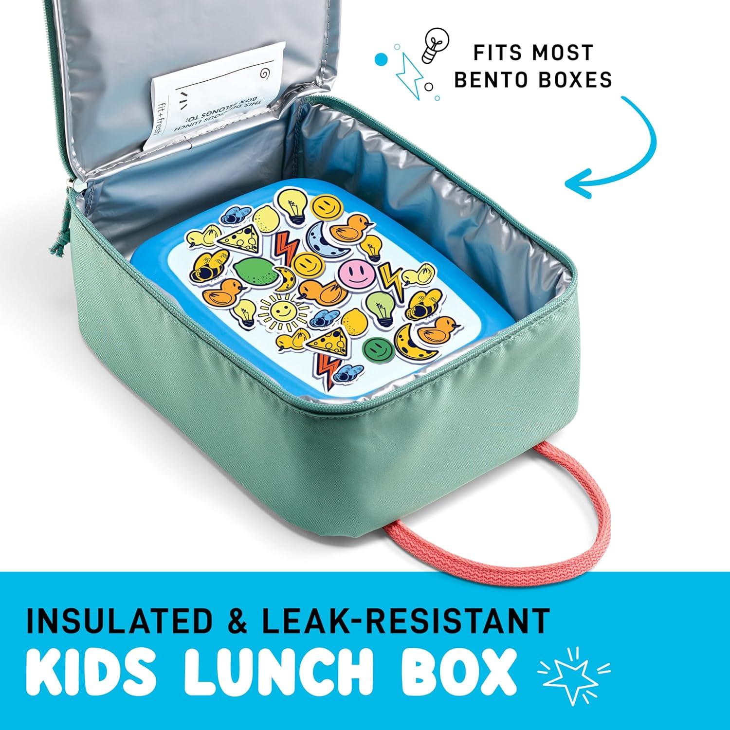 Fit & Fresh Lunch Box For Kids, Boys & Girls, School, Camp, Insulated Bag With Shoe Charm Slots For Personalization, Teal(Black)