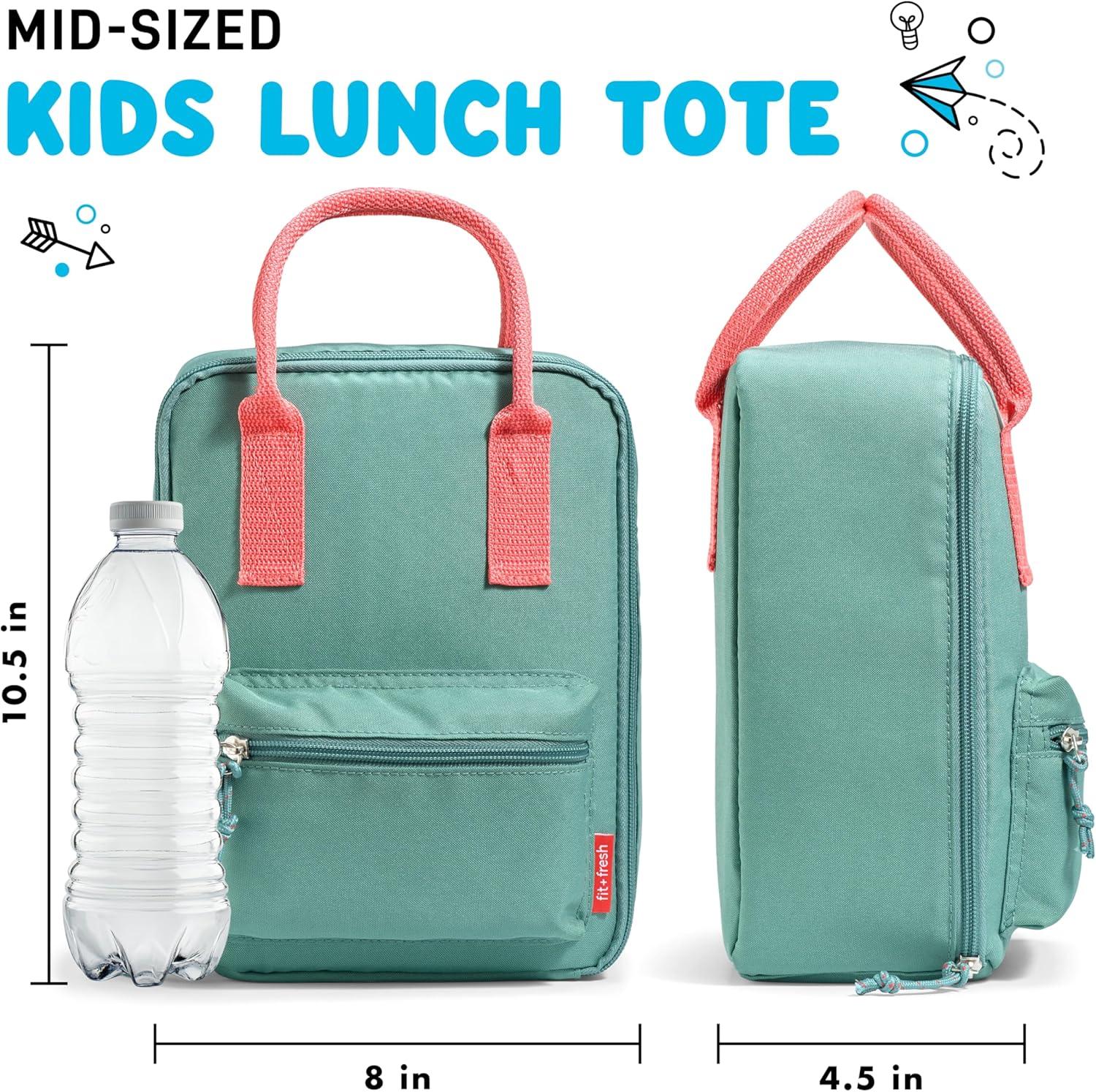 Fit & Fresh Connor Kids Tote, Versatile Thermal Insulated Box for School and Camp, Lunch Bag with Front Zip Pocket, Boulder Gray, Standard(Seafoam Green)