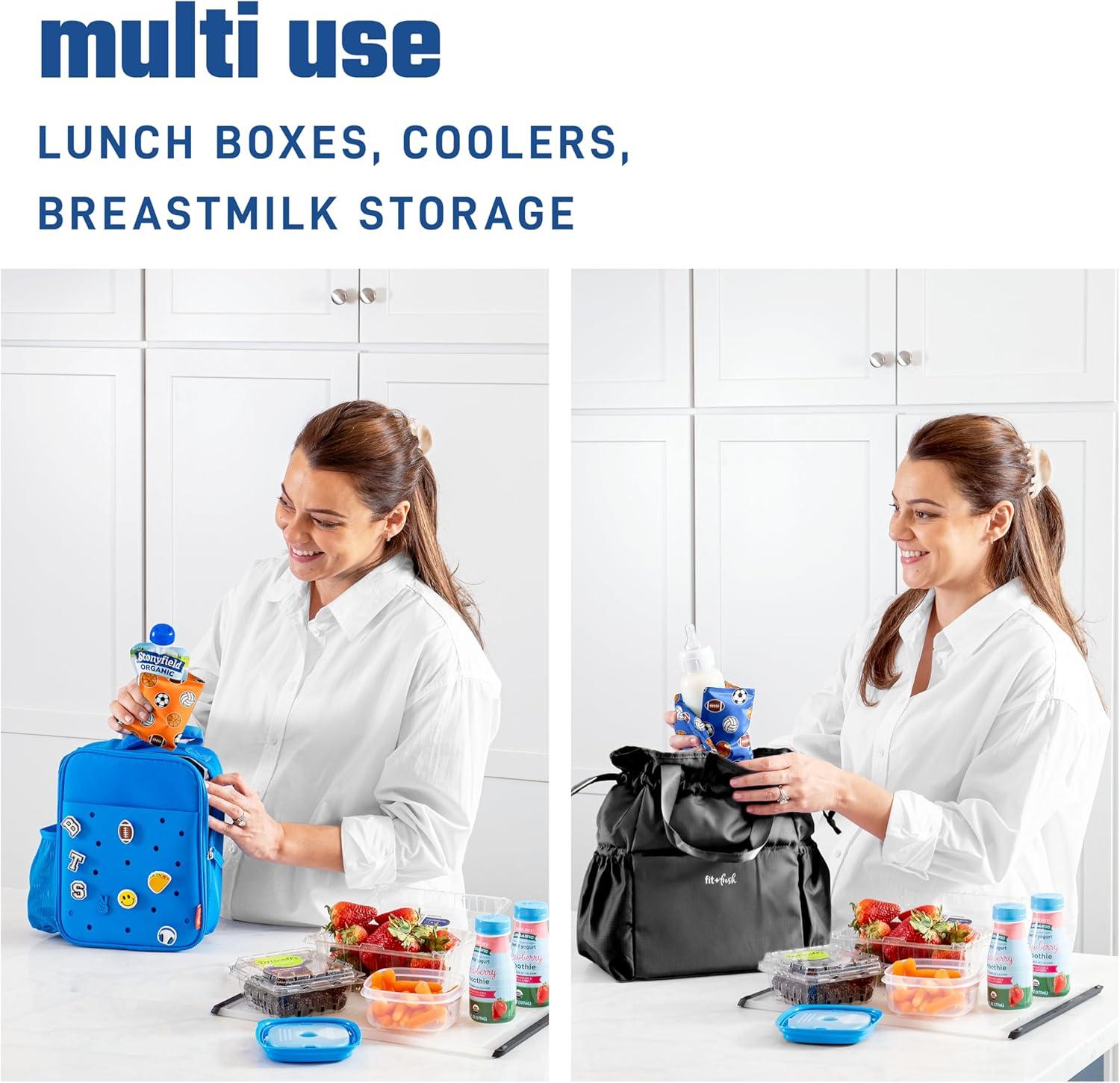 Heading back to work, school, or just need to get out of the house? These Fit + Fresh Soft Cool Coolers Ice Packs are perfectly sized for your lunch bags, grocery totes, coolers, picnic baskets, and more. These ice packs are soft and flexible, yet powerful. Each ice pack measures 5″ x 7″ x 0.25″ and stays flexible even right out of the freezer. They are perfect for tight spaces or stacking together for even greater cooling power. Made out of extra-thick nylon fabric, these soft and flexible ice packs are sweat proof. Not only will they remain free from condensation, but they won’t crack or split. For maximum cooling power, freeze the ice packs the night before use. Included in this set are 2 reusable ice packs that are non-toxic and BPA-Free. If the kids are headed back to school or you are planning a fun day at the park with the family, Fit + Fresh is here to help you stay healthy and safe along the way. Prevent germs from the cafeteria, shared office refrigerator, or takeout containers by packing a lunch with these long-lasting ice packs. Hand wash only, do not microwave. Proudly designed in the USA by women, for women, Fit + Fresh is dedicated to supporting your active and healthy lifestyle. We get it. Some days you eat leafy greens and rock it at the gym. Other days you can’t resist a decadent donut and live in yoga pants. We know firsthand that the key to living your best life is creating a colorful balance and we’re here with a line of accessories to help you do just that.
