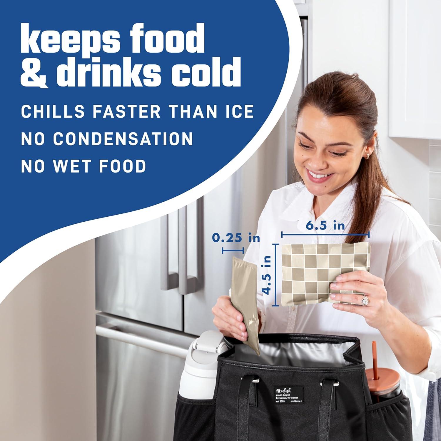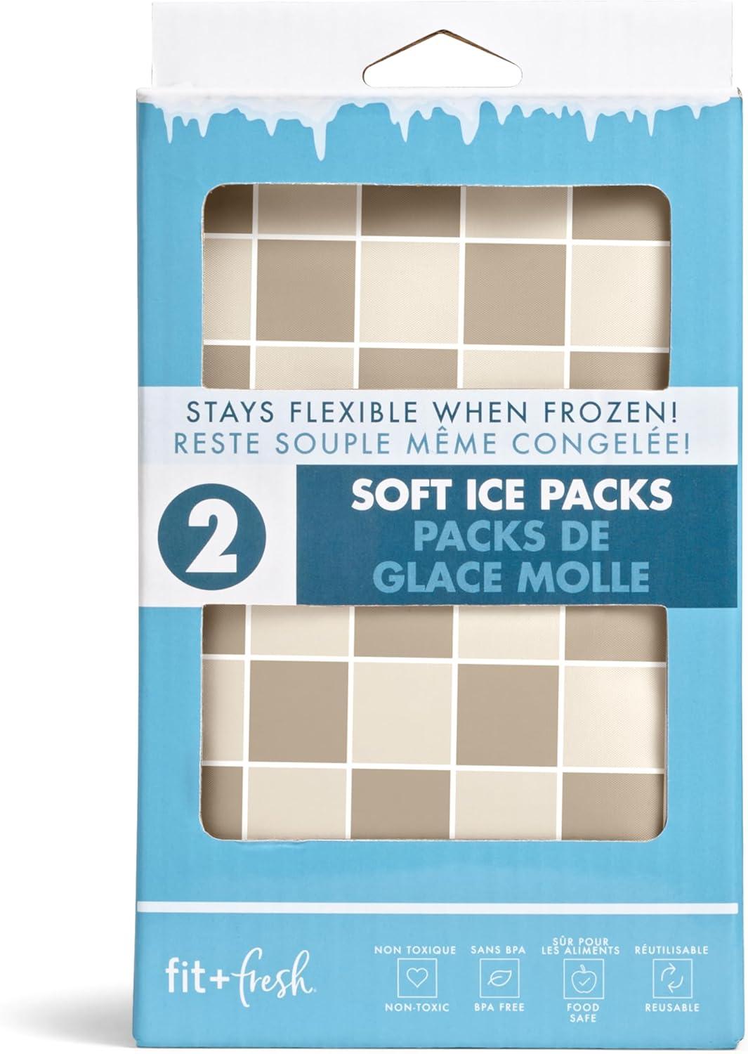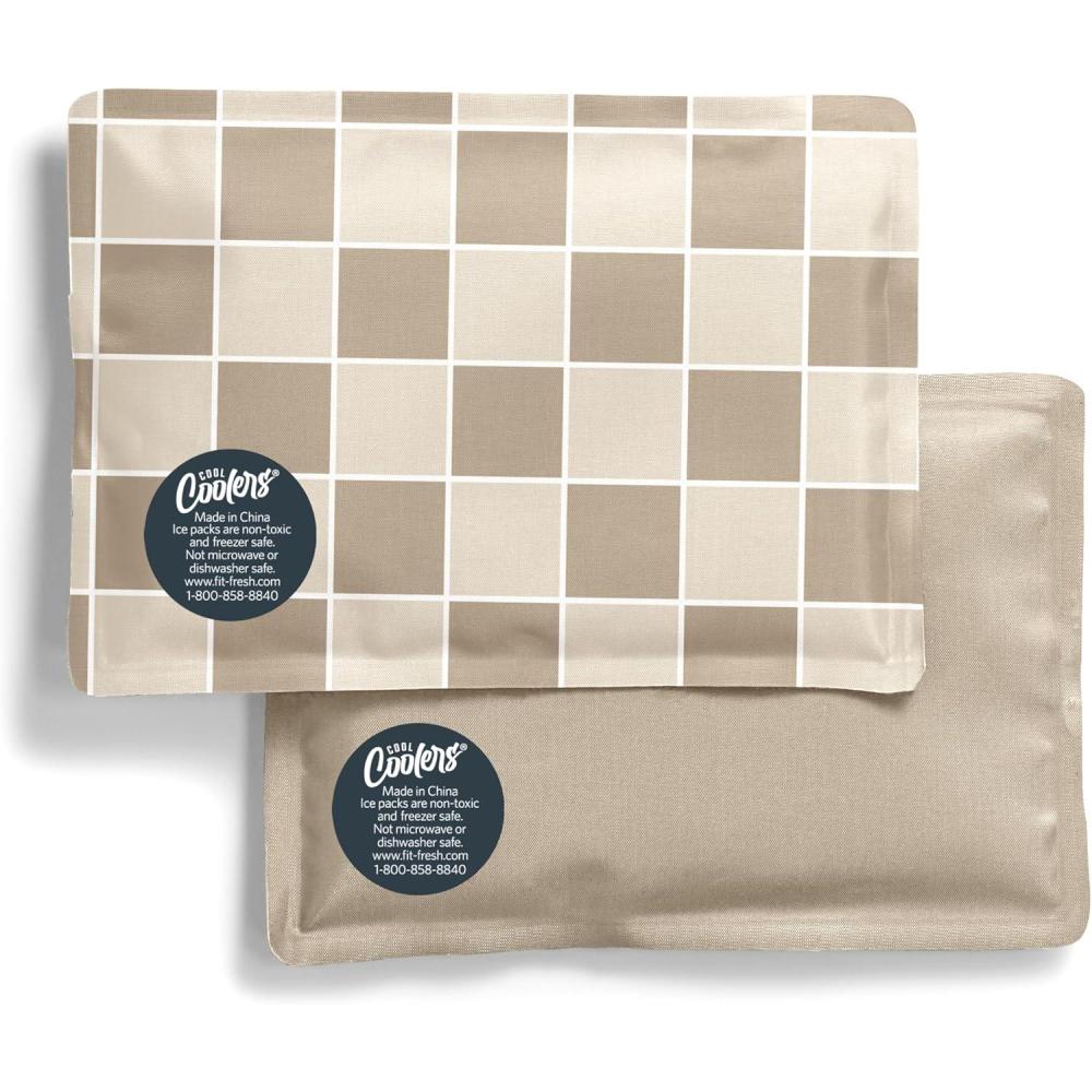Fit & Fresh Cool Coolers 2 Pack Soft Ice for Lunch Bags, Flexible Stretch Nylon, Durable, Reusable Lunch Box Ice Packs, Soft Ice, Reusable Freezer Packs, Lunch Ice, Easy to Clean, Taupe Checkerboard(Sports)