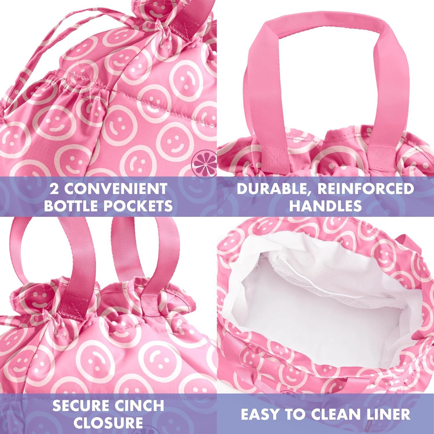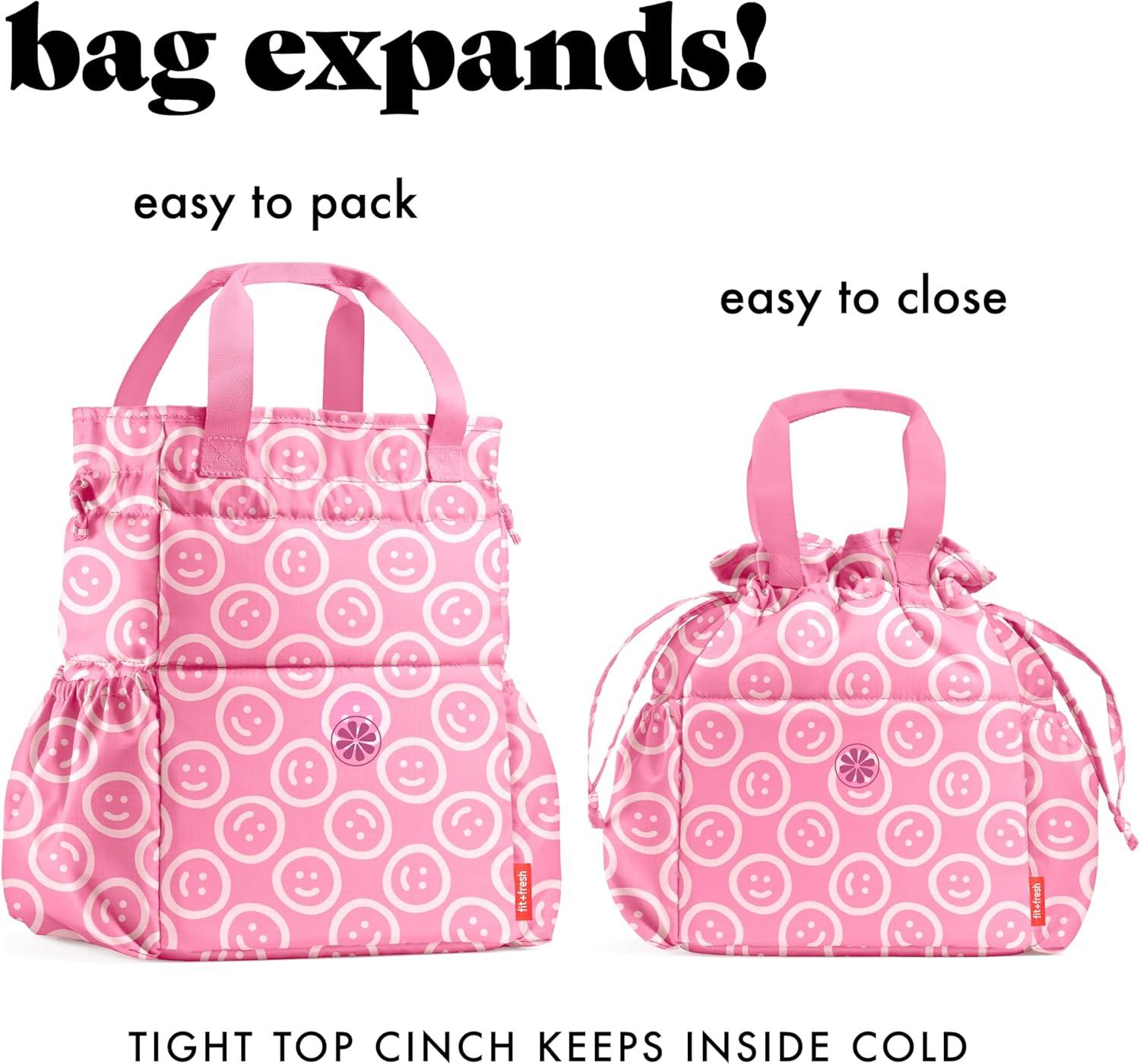 The Fit + Fresh Cromwell Cinch Lunch Bag isn’t just a lunch tote; it’s the one lunch cooler every woman needs. This adult lunch box includes two matching food containers for lunch, making it easy to stay organized. Whether you're heading to work, school, or a weekend outing, this large lunch bag is designed to go wherever life takes you. Created by women who understand the daily hustle, it combines premium performance with effortless style. The spacious interior features modern prints, two exterior bottle pockets, and a mesh interior sleeve. The secure cinch-top closure provides easy access, no zipper required while keeping contents cool, neat, and mess-free. Crafted with a durable, tear-resistant exterior and leak-resistant PEVA lining, this teacher lunch box is built to last. It’s stain-resistant and easy to hand wash, staying fresh use after use. Whether you're commuting, pumping on-the-go, or juggling snacks and schedules, this is a lunch bag women love. Ideal for every lifestyle, teacher, nursing mom, student, or busy professional. This lunch tote bag for women makes packing meals something you’ll actually enjoy. Shop Fit & Fresh for stylish, insulated lunch bags for women and accessories that are as hardworking and fashionable as you are.