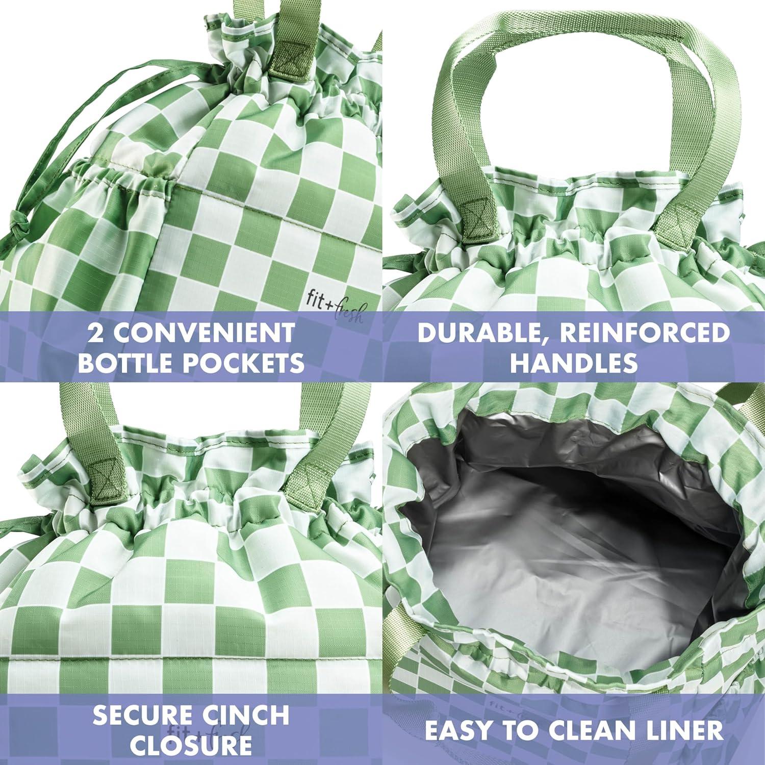 The Fit + Fresh Cromwell Cinch Lunch Bag isn’t just a lunch tote; it’s the one lunch cooler every woman needs. This adult lunch box includes two matching food containers for lunch, making it easy to stay organized. Whether you're heading to work, school, or a weekend outing, this large lunch bag is designed to go wherever life takes you. Created by women who understand the daily hustle, it combines premium performance with effortless style. The spacious interior features modern prints, two exterior bottle pockets, and a mesh interior sleeve. The secure cinch-top closure provides easy access, no zipper required while keeping contents cool, neat, and mess-free. Crafted with a durable, tear-resistant exterior and leak-resistant PEVA lining, this teacher lunch box is built to last. It’s stain-resistant and easy to hand wash, staying fresh use after use. Whether you're commuting, pumping on-the-go, or juggling snacks and schedules, this is a lunch bag women love. Ideal for every lifestyle, teacher, nursing mom, student, or busy professional. This lunch tote bag for women makes packing meals something you’ll actually enjoy. Shop Fit & Fresh for stylish, insulated lunch bags for women and accessories that are as hardworking and fashionable as you are.
