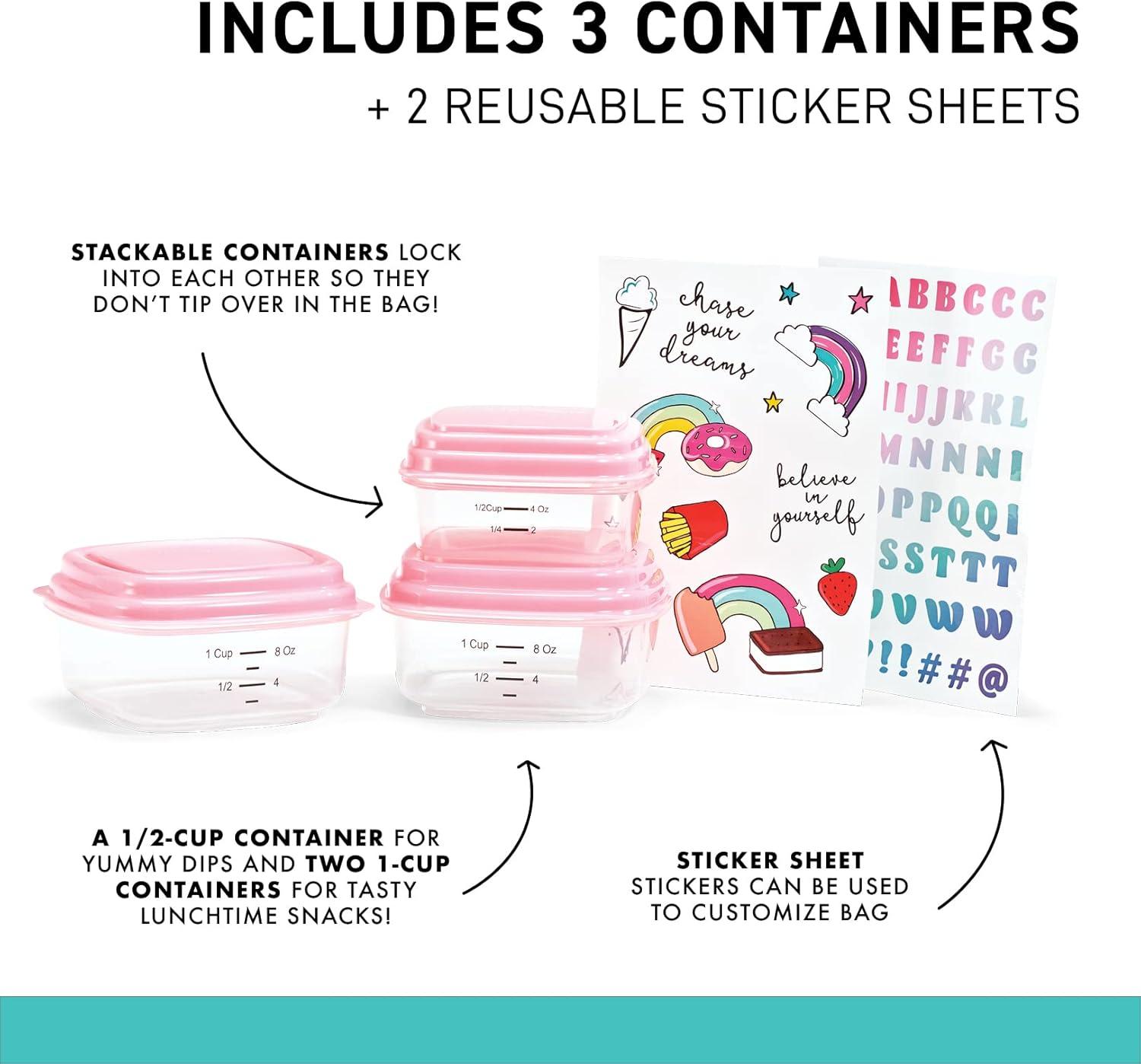 Fit + Fresh DIY Sticker Insulated Lunch Bag, Trendy Kids Lunch Box, Soft Lunch Cooler Bag, Perfect for School, Picnics, Trips & More, Navy(Pink)