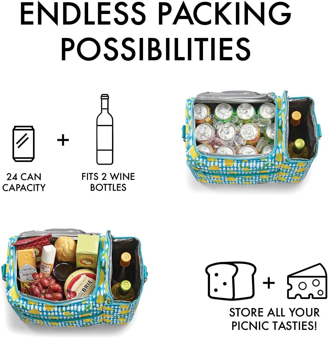 LARGE COOLER BAG – Measuring 17”x12”x8″, our large soft cooler easily fits 24 cans and offers ample space for a variety of food, snacks, and drinks. Made from a lightweight & stain resistant polyester for ultimate portability.