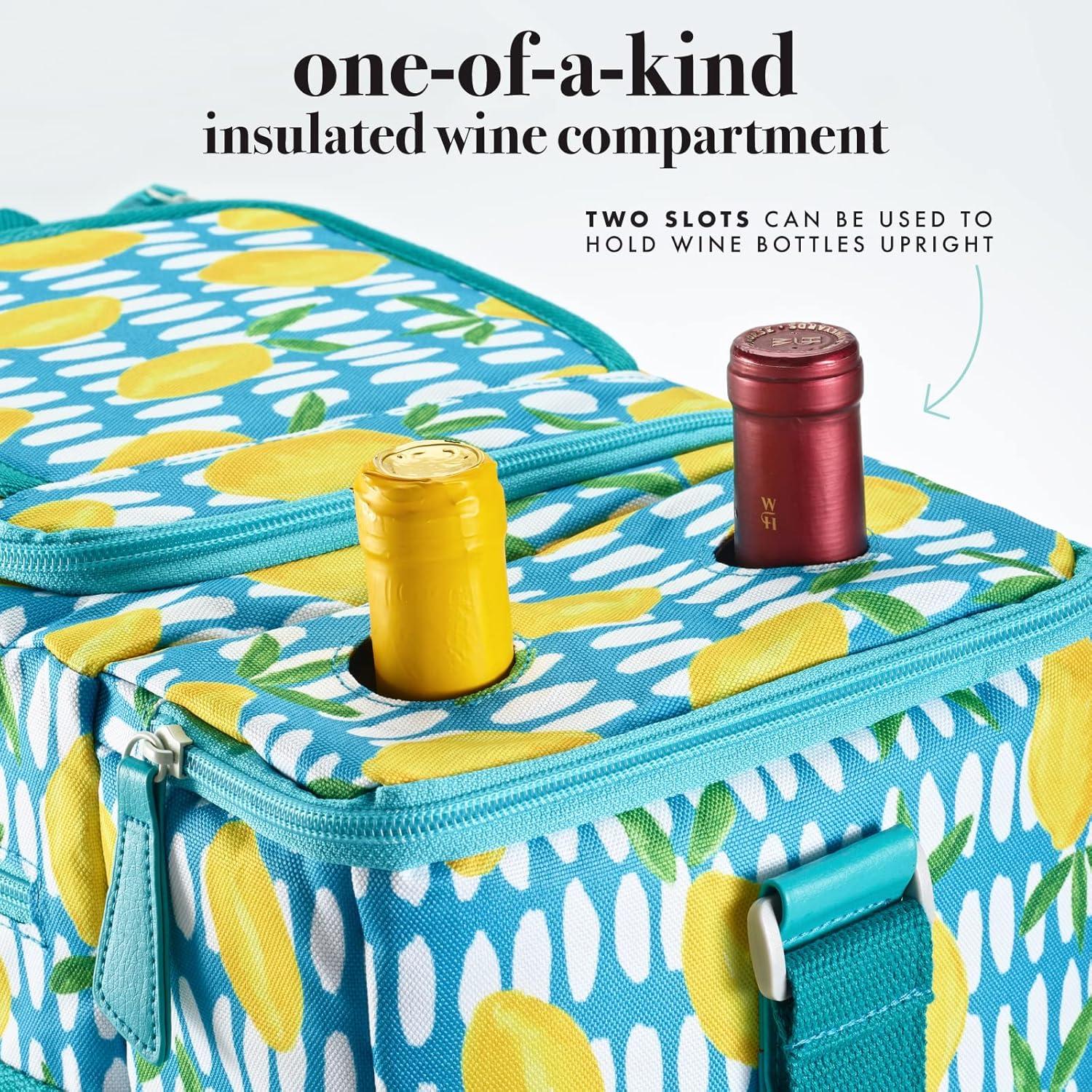 STAYS COOL – 3 layer thermal insulation ensures prolonged freshness, complemented by a leak-proof interior for easy cleaning. Our slotted compartment holds wine bottles upright when traveling.