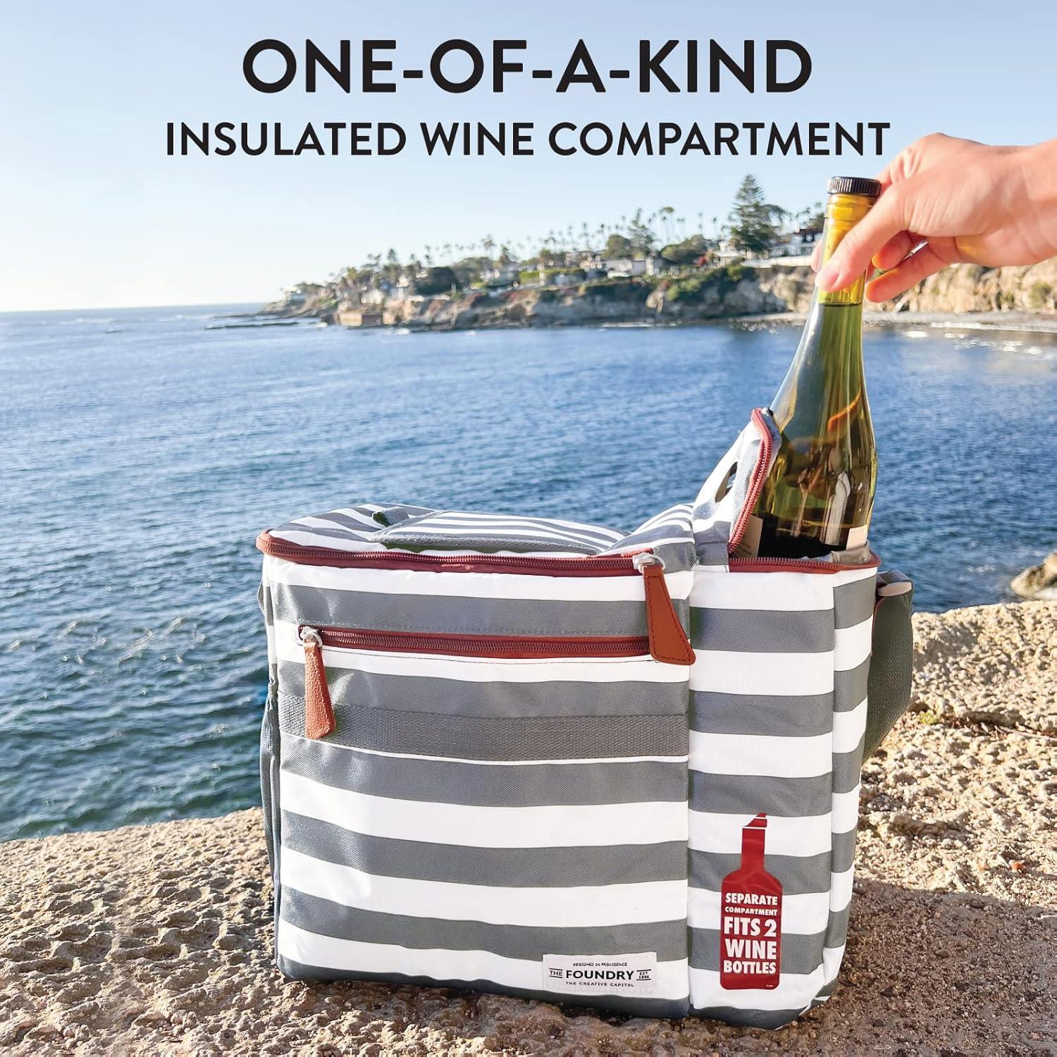 imageFit ampamp Fresh Foundry Soft Cooler Bag Insulated Leak Proof and Wine Carrier Bag 24 Can Large Soft Sided Cooler Bag for Men and Women 2 Bottle Wine Holder Tote Bag for Travel Beach and Picnic BagGrey Stripe