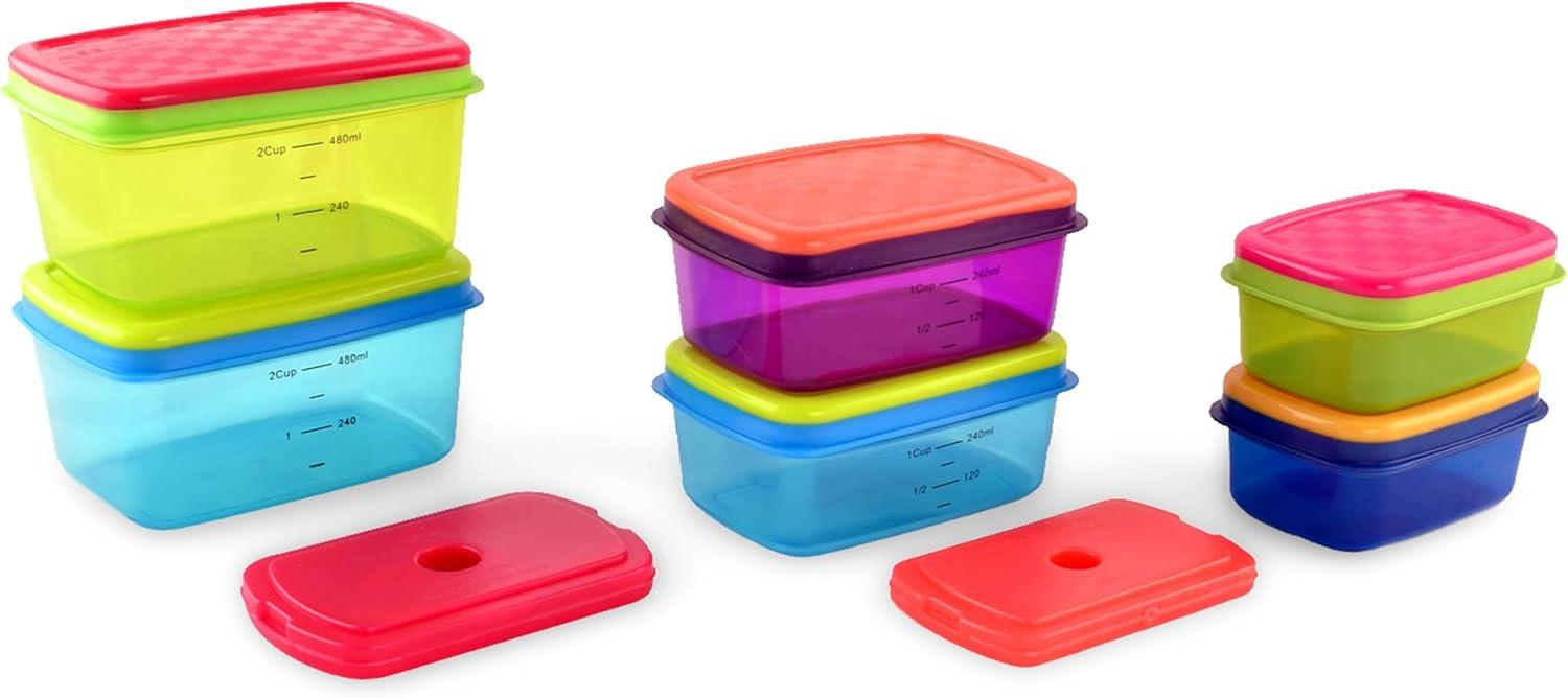 14 PIECE KIT: Set of 6 complete containers provides you with a versatile range of options for packing healthy lunches for children. (2) 2-cup containers, (2) 1-cup containers, and (2) ½-cup containers.