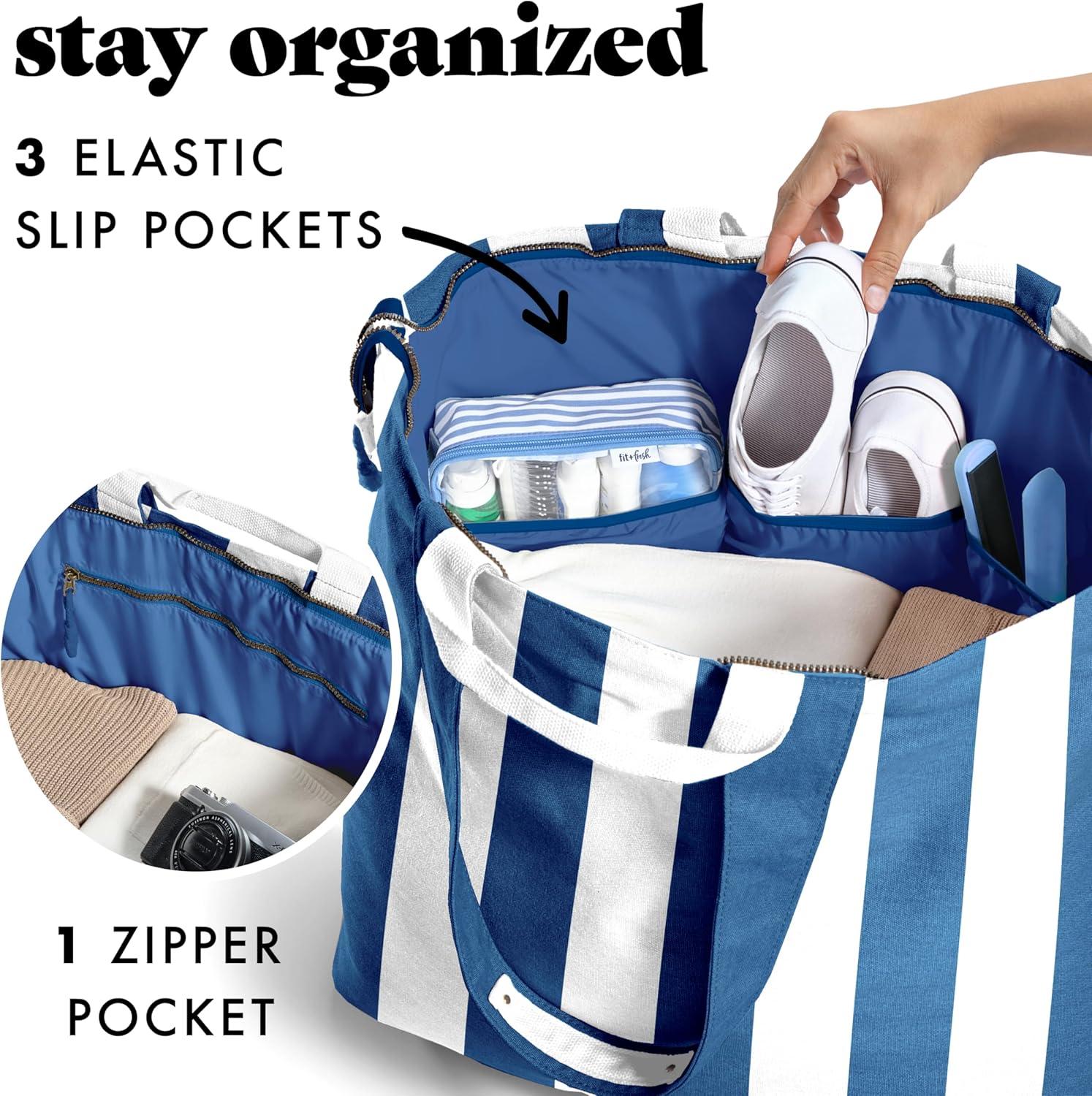 Fit & Fresh Large Beach Bag for Women - Extra Large Travel Tote With Pockets(Cobalt Stripe)
