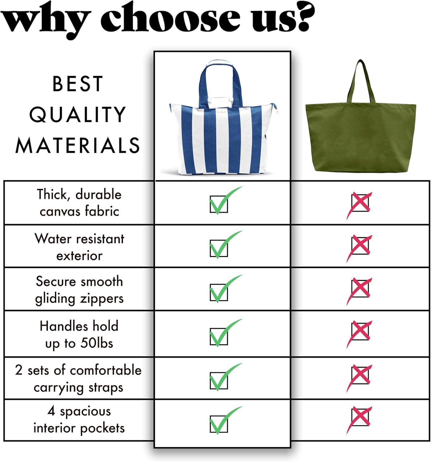 Fit & Fresh Large Beach Bag for Women – Extra Large Travel Tote With Pockets(Cobalt Stripe)
