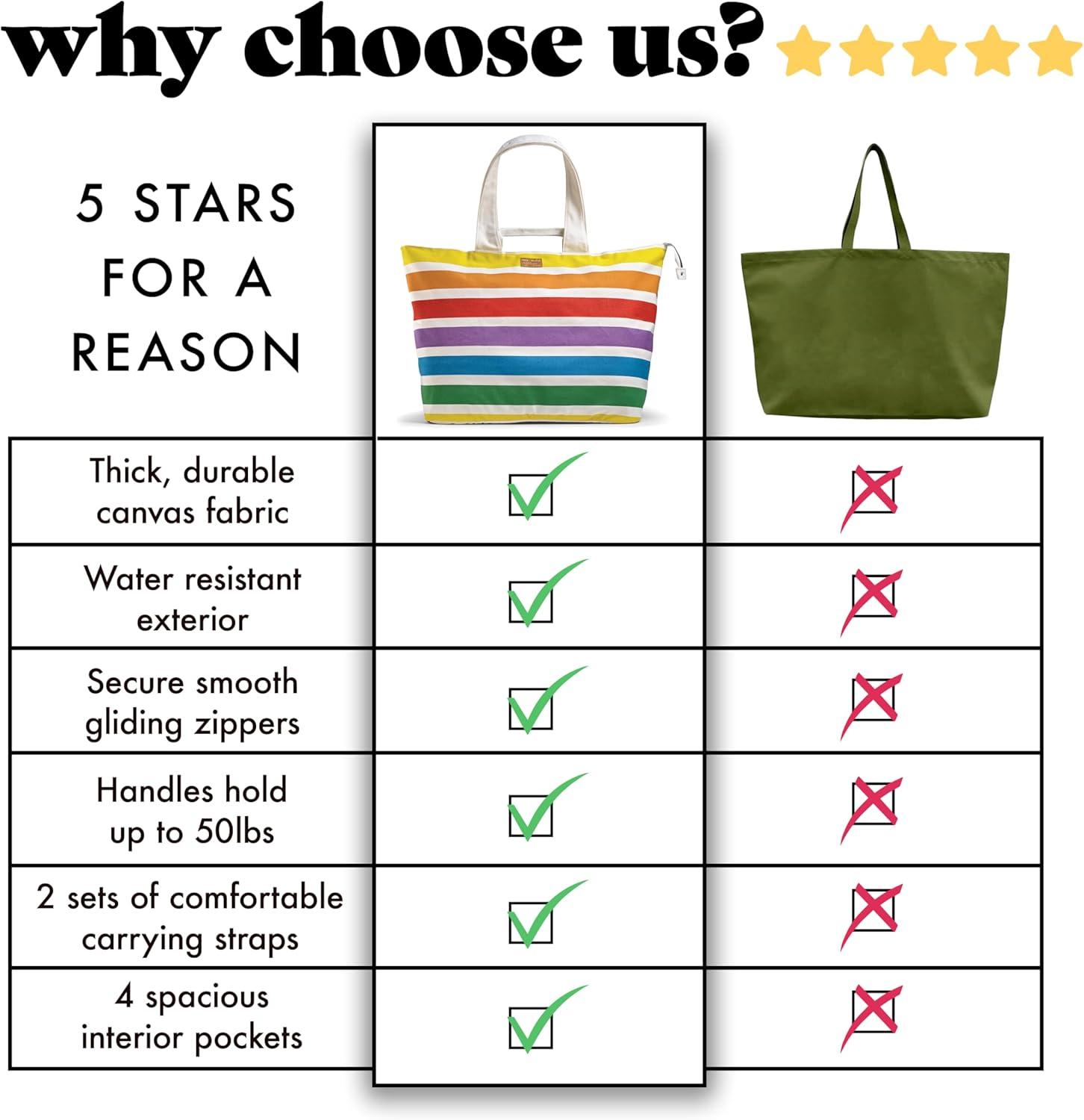 Fit & Fresh Large Beach Bag for Women – Extra Large Travel Tote With Pockets(Colorful Stripe)
