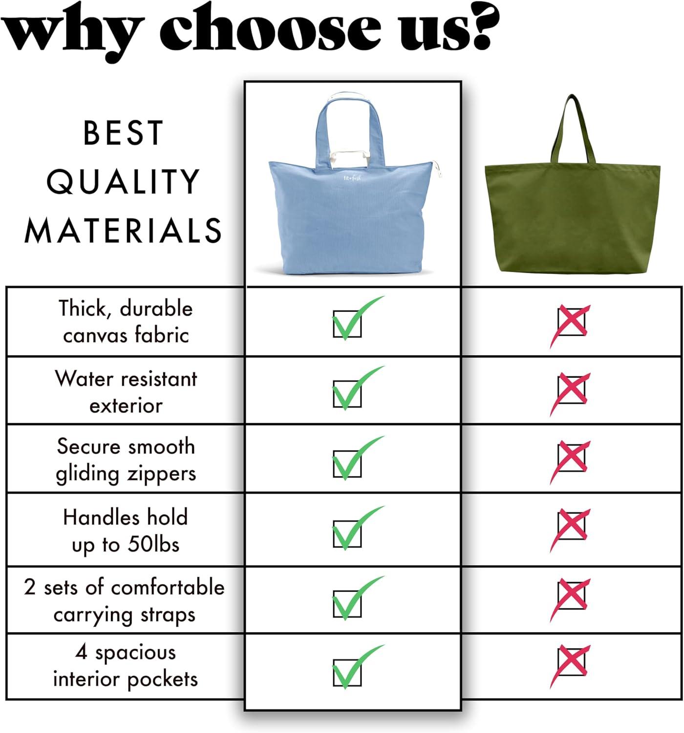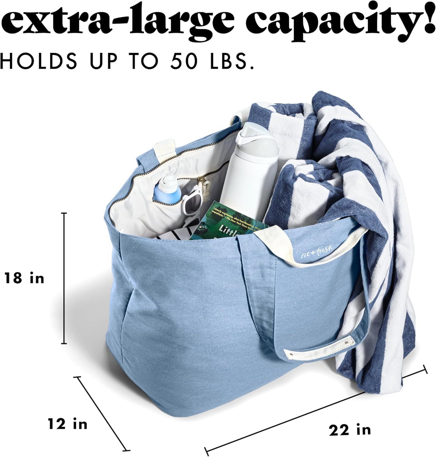 Fit & Fresh Large Beach Bag for Women – Extra Large Travel Tote With Pockets(Light Blue)