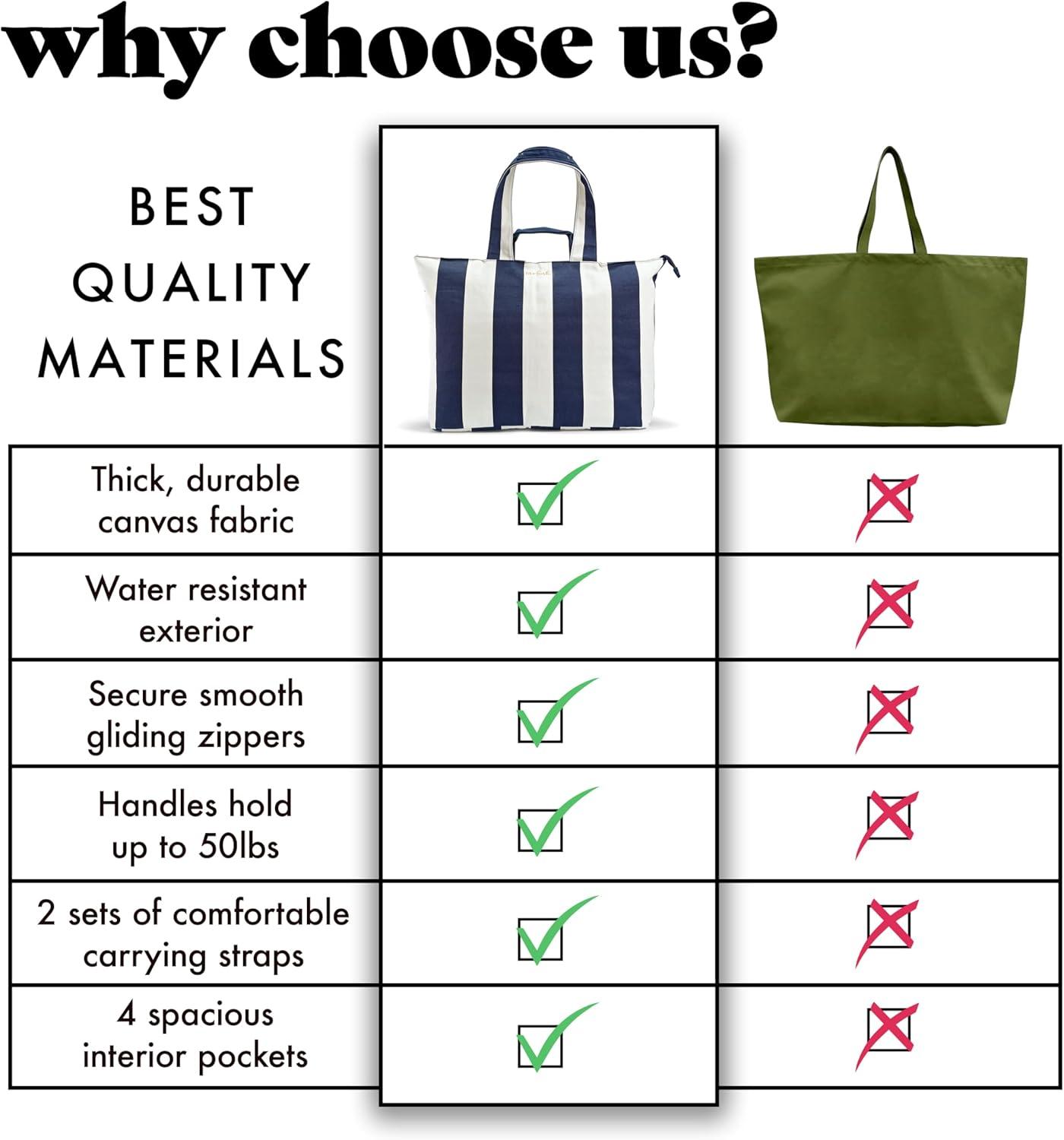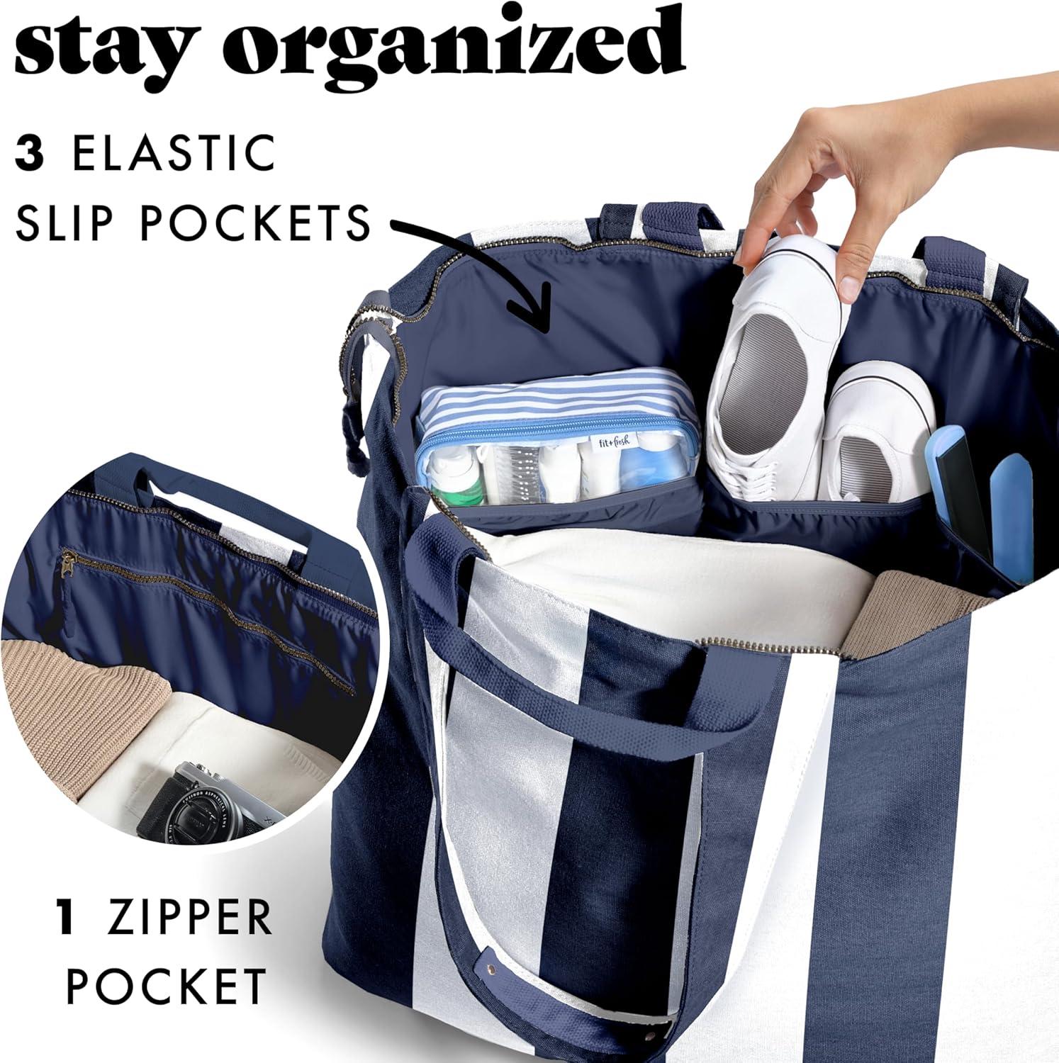 Meet the Fit & Fresh All The Things Tote Bag, the ultimate large tote bag! Measuring at a generous 22″ x 18″ x 12″, this XXL bag can handle it all. Whether lugging laundry, bulky groceries, craft supplies, skis, or sports equipment this versatile bag has you covered. It’s the XL tote bag you’ll need to fit “all the things.” Designed with water resistant canvas exterior, this large beach bag is a go-to for beach towels, kids’ toys, beach or waterpark essentials, and more. It can even hold a beach chair and other large items! It features a wide zipper opening for easy access to a spacious interior, three large elastic pockets and one interior zipper pocket. It’s easy to keep everything organized! Two sets of sturdy canvas handles allow for comfortable carrying all day. Its versatile design makes it ideal as a nurse bag, diaper bag, teacher tote, or utility bag. Great as a travel tote bag for women too! This weekend bag for women is perfect for quick getaways, works as a road trip bag or as a carry-on tote bag for flights. Folds flat for compact storage, it’s the ideal oversized travel tote for all your adventures!