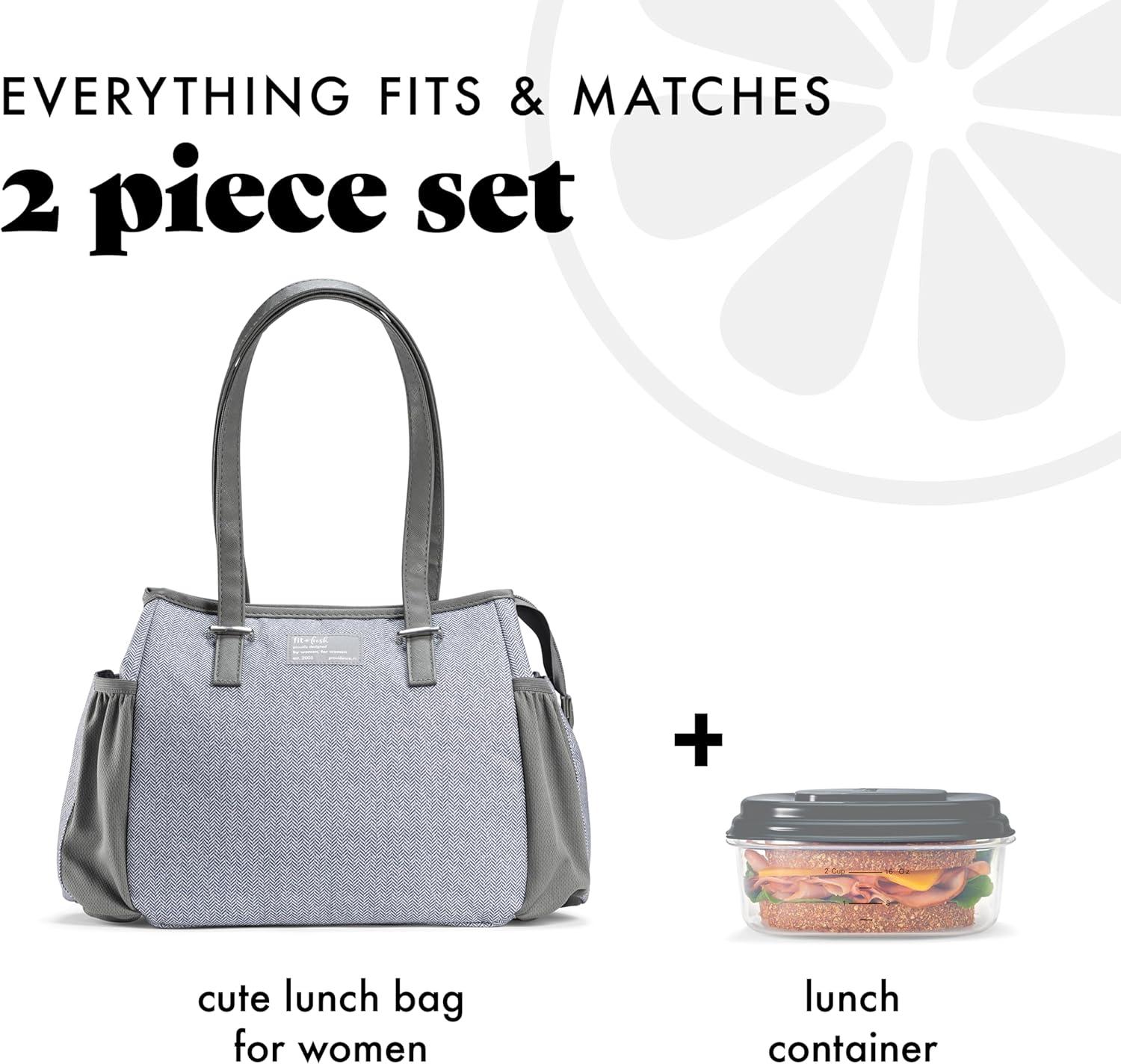 imageFit ampamp Fresh Lunch Bag For Women Insulated Womens Lunch Bag For Work Leakproof ampamp StainResistant Large Lunch Box For Women With Containers and Zipper Closure Copley Bag PlumGray Tweed
