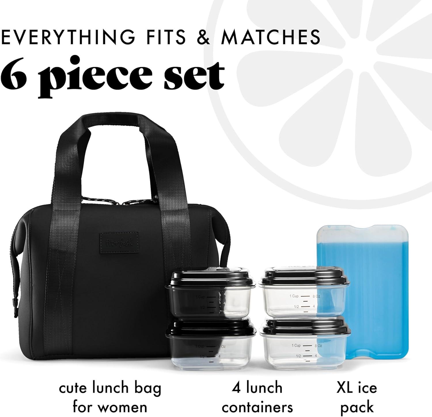 INCLUDES FOUR MATCHING CONTAINERS AND XL ICE PACK – Our adult lunch box comes with four 1 cup snack containers to help you stay organized and one XL ice pack. This lunch bag features two straps, two zipper pulls and flexible, washable neoprene.