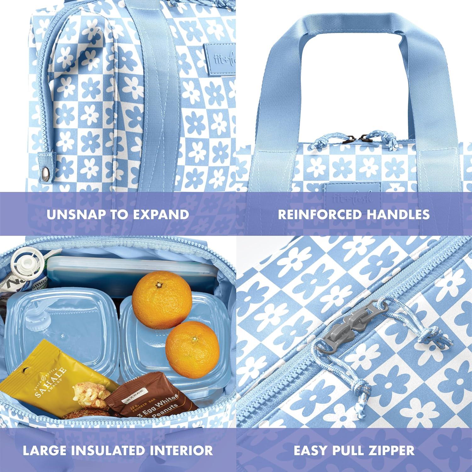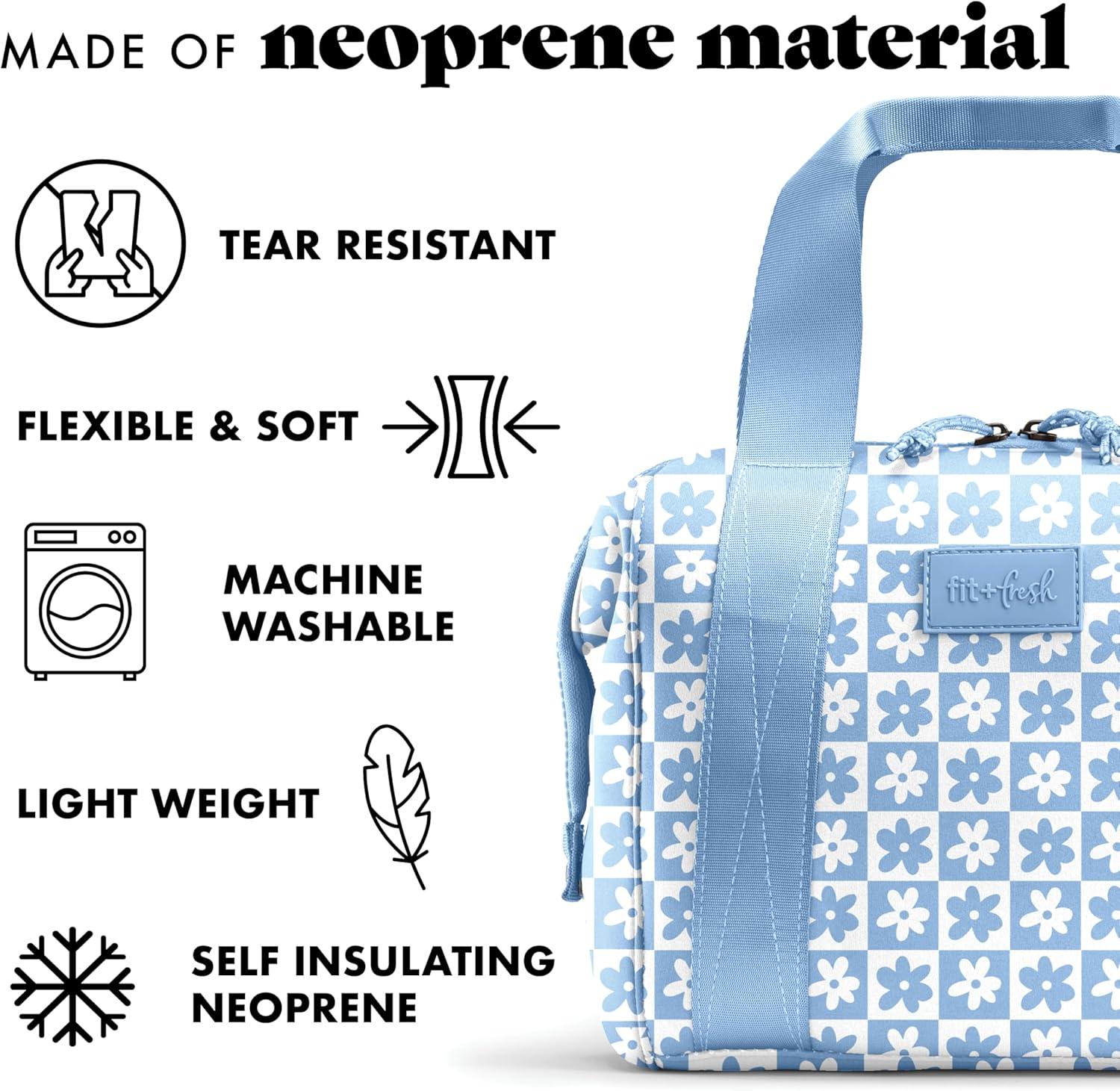 Fit & Fresh Neoprene Lunch Bag For Women, Insulated Womens Lunch Bag For Work, Tear & Stain Resistant Large Lunch Box For Women With Containers and Ice, Machine Washable Remi Lunch Bag, Slate Blue(Blue Daisy)