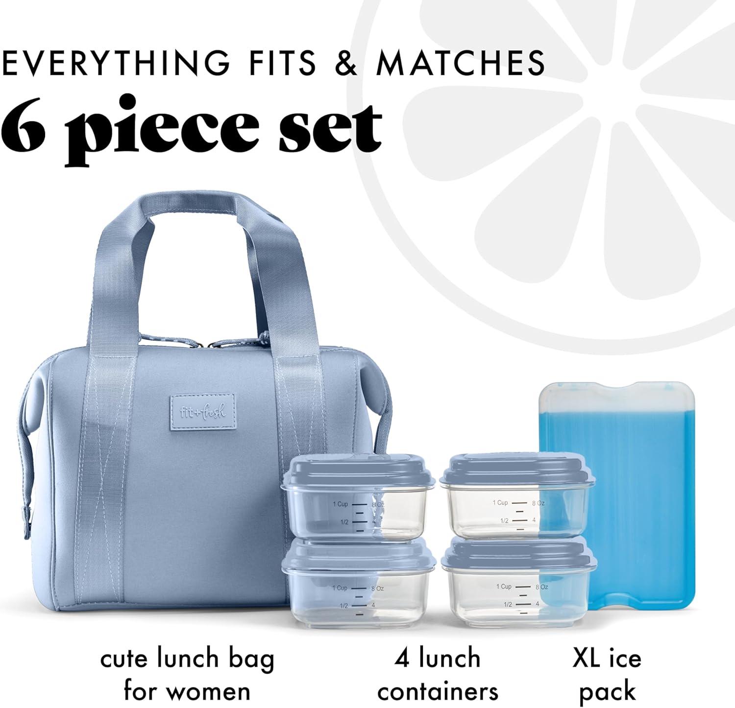 imageFit ampamp Fresh Neoprene Lunch Bag For Women Insulated Womens Lunch Bag For Work Tear ampamp Stain Resistant Large Lunch Box For Women With Containers and Ice Machine Washable Remi Lunch Bag Slate BlueBlue