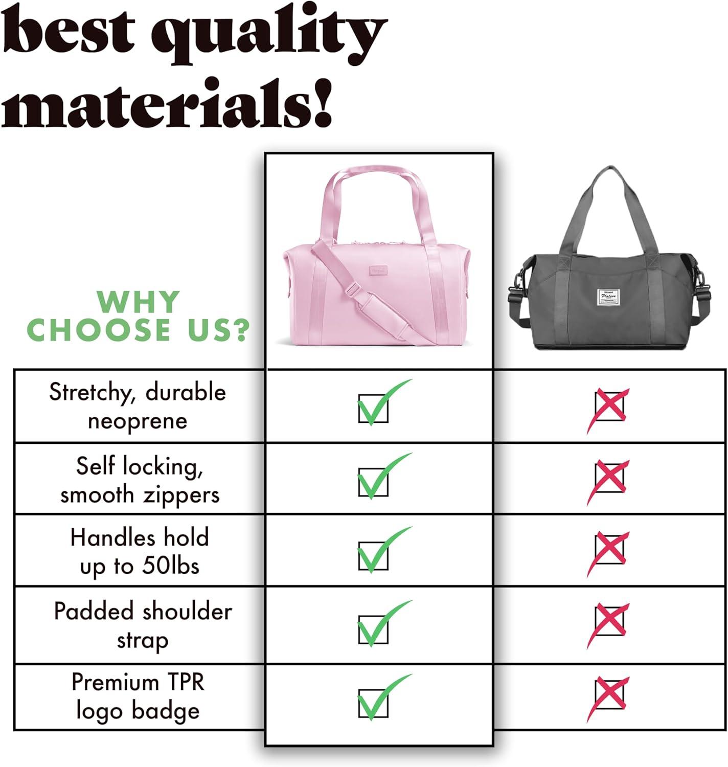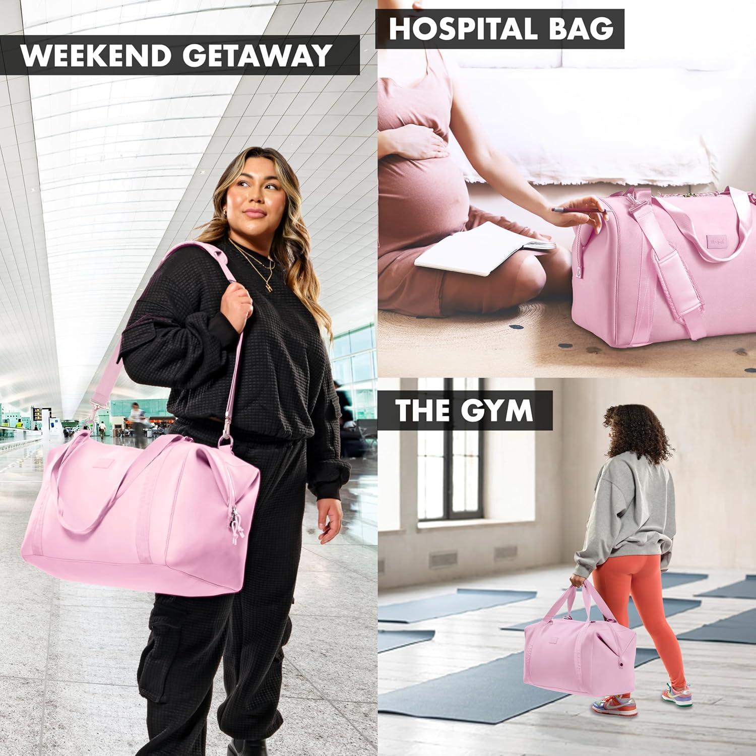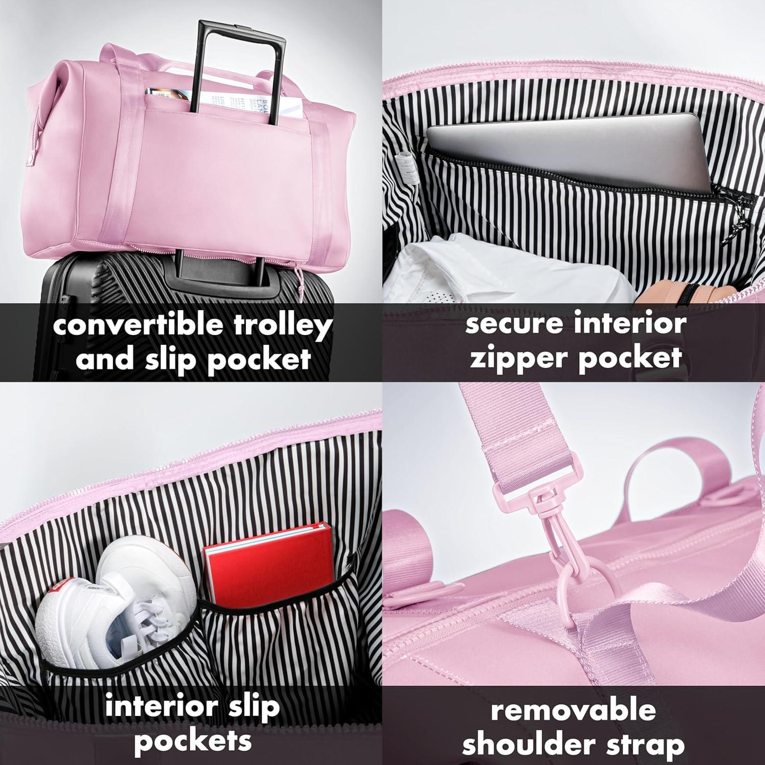 Discover the ultimate travel companion with our premium duffel bag, designed for convenience and style. Measuring 19″x10″x11.5″, this airplane-friendly carry-on fits perfectly in overhead compartments. Made from durable, waterproof neoprene, this versatile duffel bag is ideal for travel or gym use, offering exceptional flexibility, water resistance, and easy cleaning. With a large capacity, it’s perfect for 3-5 days of essentials, including a 13″ laptop. The bag features four interior pockets—two elasticated, a mesh bottle pocket, and a zippered pocket—plus an exterior pocket for quick access to your phone and accessories. Enjoy reinforced webbing handles, a detachable adjustable crossbody strap with a comfortable shoulder pad, and the ability to expand for extra space by unbuttoning the sides. Additionally, the exterior pocket unzips to serve as a trolley pocket, securing it to your suitcase. Whether you’re heading out for a weekend getaway or a business trip, this stylish and functional duffel bag ensures you travel with ease and elegance. Elevate your travel experience with the best duffel bag designed for your adventures!