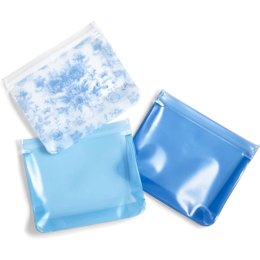 Say goodbye to single-use plastic with our Reusable PEVA Bags! This set includes 3 versatile storage bags in colors Blue Floral Toile, Light Blue & Blue! Designed to save up to 300 plastic baggies. Perfect for storing sandwiches, snacks, and other small items, these bags are ideal for reducing waste while keeping your food fresh and organized. These storage bags are also freezer safe, making them perfect for meal prepping and food storage. Once you’re done, simply hand wash with soapy water and air dry. These reusable storage bags are the perfect versatile option not only for food but for storing toys, office supplies, travel essentials, and more! Compact and versatile, these silicone pouches fit easily into lunch bags, purses, drawers, or travel kits. Made from safe & non-toxic food-grade PEVA material, these bags are BPA-free and eco-friendly. Designed with a leakproof double-seal zipper, these reusable snack bags ensure airtight closure, preventing spills and preserving the freshness of your food or items. Say goodbye to messy leaks and hello to an eco-friendly storage solution!