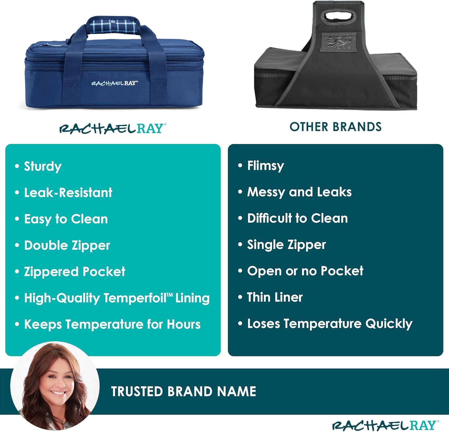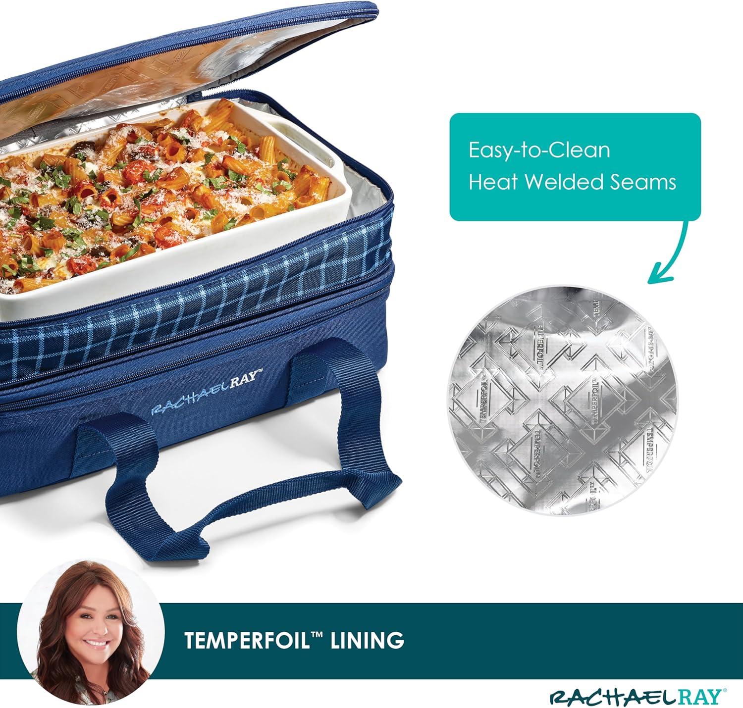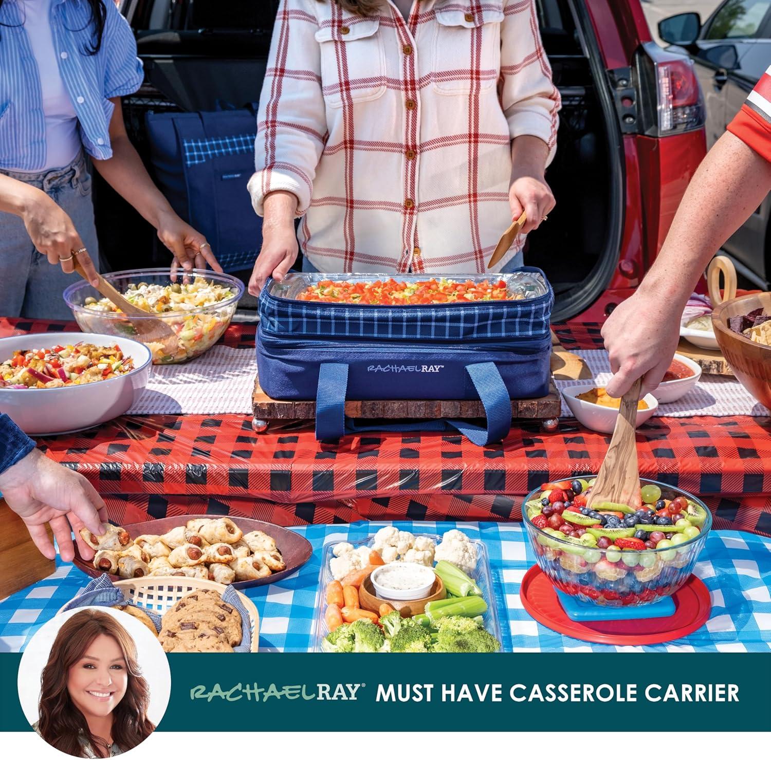 Rachael Ray Expandable Insulated Casserole Carrier for Hot or Cold Food, Thermal Lasagna Lugger Tote for Potluck, Parties, Picnic, and Cookouts, Fits 9″ x 13″ Baking Dish(Blue Gingham)