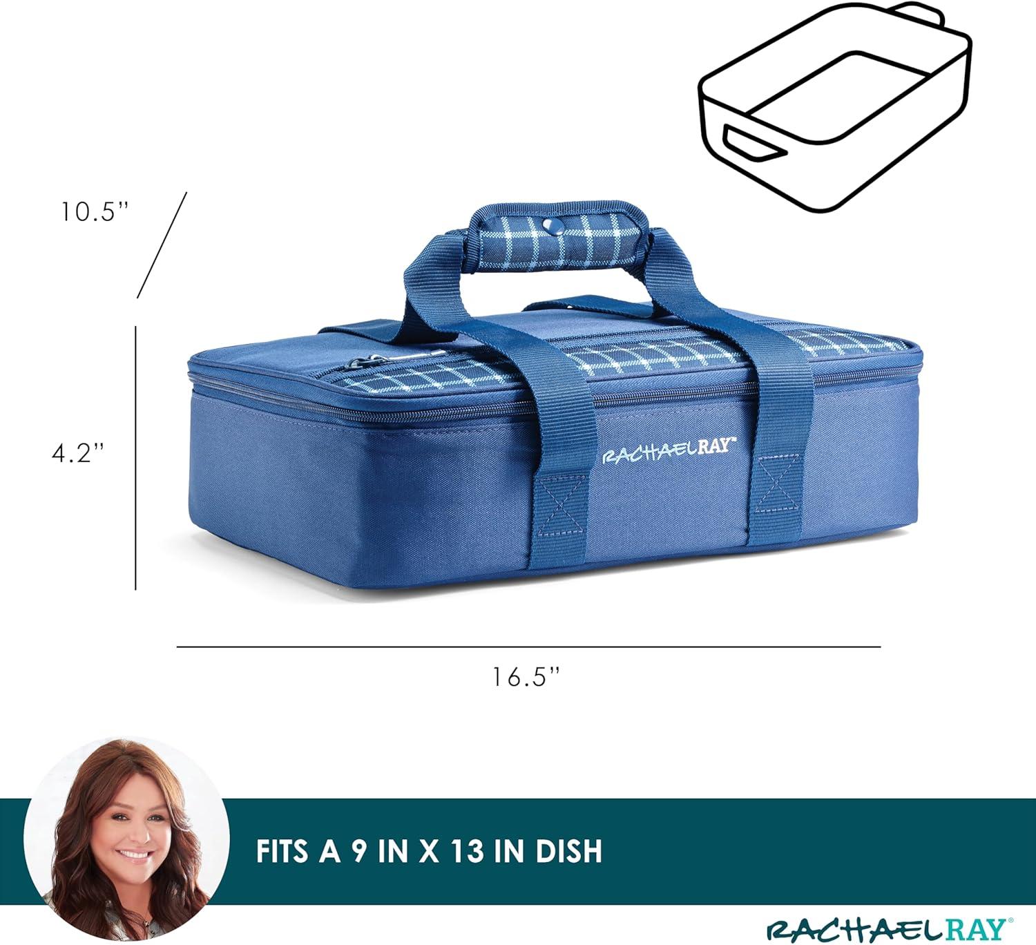 Rachael Ray Lasagna Lugger, Thermal Insulated Casserole Carrier for Hot or Cold Food, Lugger Tote for Potluck, Parties, Picnic, and Cookouts, Fits 9" x 13" Baking Dish(Navy Gingham)