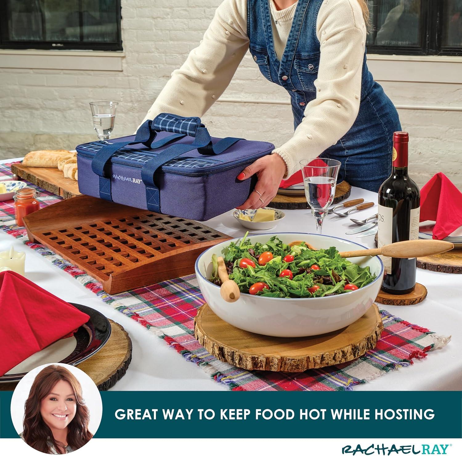 imageRachael Ray Lasagna Lugger Thermal Insulated Casserole Carrier for Hot or Cold Food Lugger Tote for Potluck Parties Picnic and Cookouts Fits 9quot x 13quot Baking DishNavy Gingham